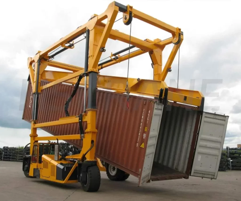 Стэддл-карьер — это мобильное средство для обработки контейнеров. Он поднимает и укладывает их с помощью верхнего распределителя, сочетая в себе механические, гидравлические и электронные системы.