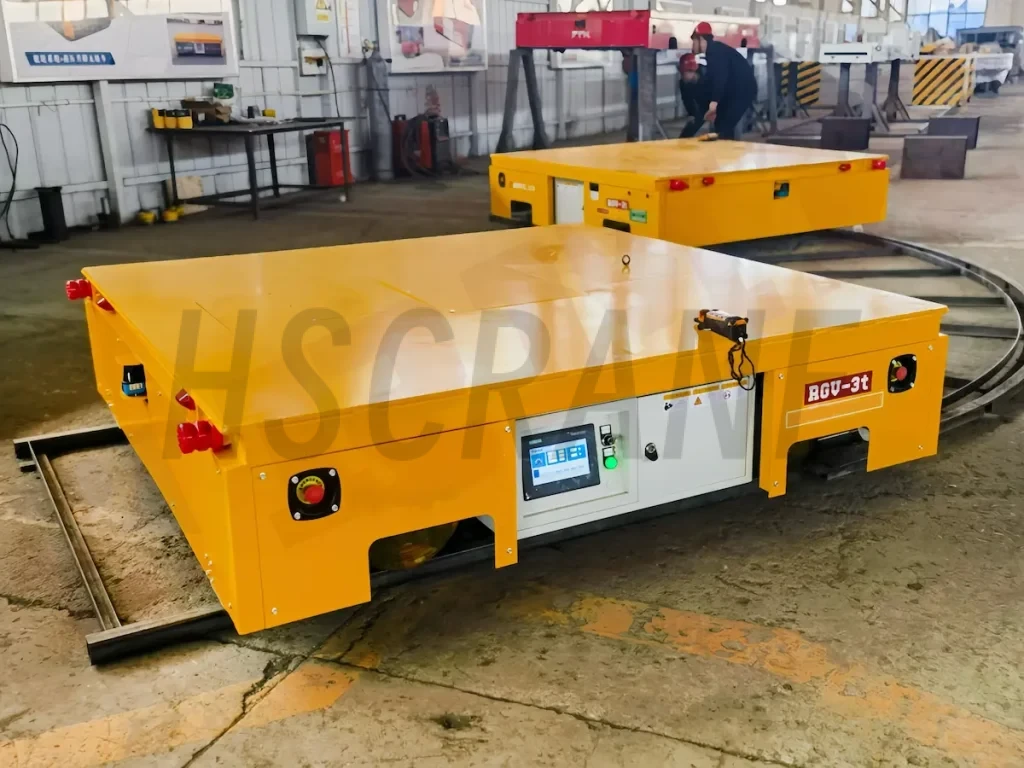• Тележка эффективно работает в узких зонах и на сложных маршрутах: Безрельсовые модели маневренны и подходят для узких проходов. Рельсовые модели подходят для дальних перевозок и оптимизируют использование пространства.