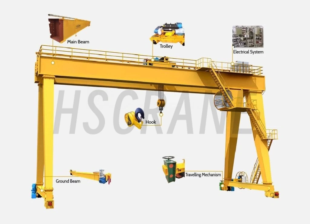 Главная балка представляет собой сварную конструкцию коробчатого или решётчатого типа, обладающую высокой жёсткостью и прочностью. Для удобства и безопасности осмотра предусмотрены пешеходные проходы с ограждениями. Всё это соответствует стандарту GB/T14406-93 «Универсальный козловой кран».