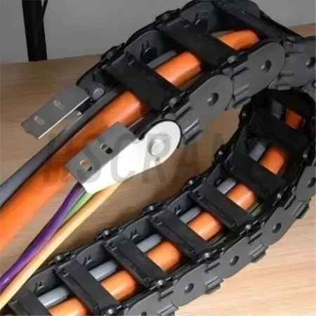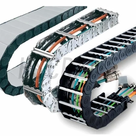 Каждое звено кабельной цепи открывается, что упрощает монтаж и обслуживание; низкий уровень шума и устойчивая работа на высокой скорости.