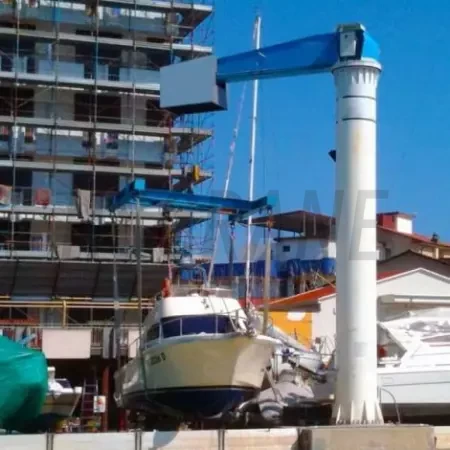 - Морской кран-стрела используется для подъема яхт; колонна крепится на набережной или береговой платформе.