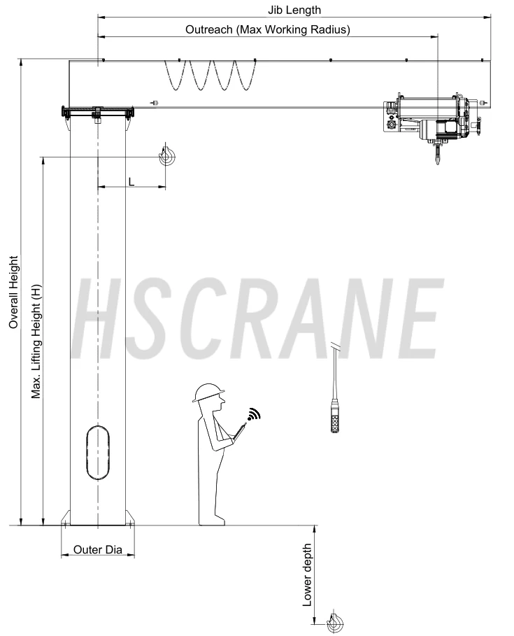 - Электрические тали смонтированы и перемещаются по поперечным балкам с левой и правой стороны стрелы.