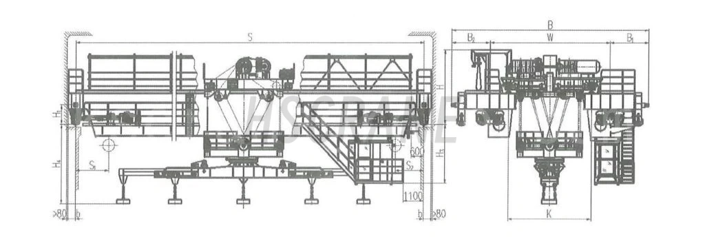 Краны оборудованы устройствами удержания при отключении питания и современными электронными системами управления. Используются электромагниты постоянного тока, гидравлические тормоза, буферы, защитные кожухи для механизмов, а также многочисленные защитные устройства и монтажные площадки.
