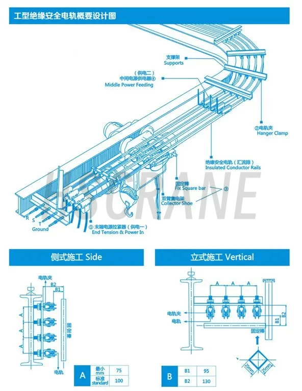 Система Шинопроводов для крана — это современная система электропитания, использующая однофазные изолированные Шинопроводы для крана. Она соответствует новейшим нормативам и обеспечивает подачу электроэнергии пользователям. Материалы однофазных изолированных Шинопроводов для крана в основном медь и алюминий. Шинопроводы могут устанавливаться вертикально или горизонтально в любом количестве на прямой или изогнутой трассе.