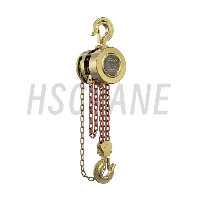 - Взрывозащищенный цепной блок обеспечивает более безопасную эксплуатацию без возникновения искр.
