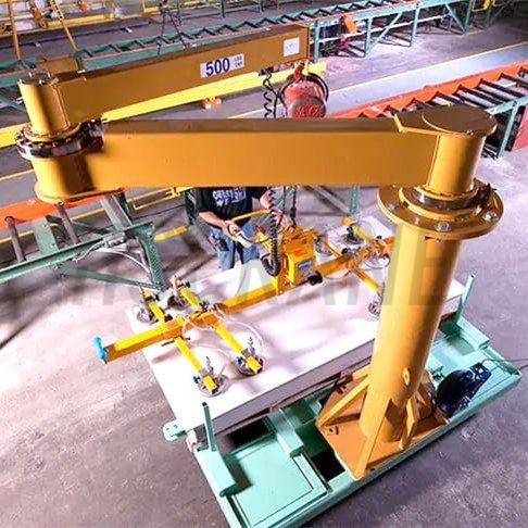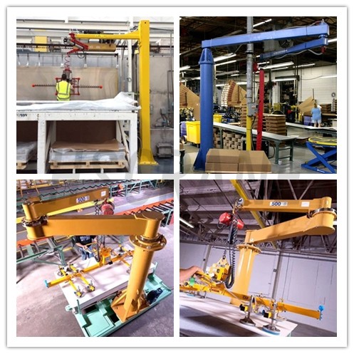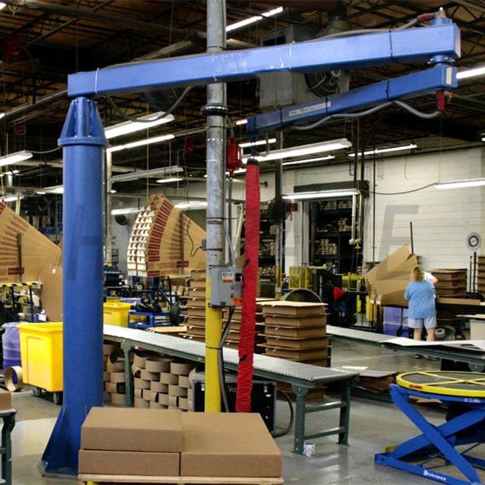 • Подъёмный механизм: как правило, электрическая таль, пневматический балансир или интеллектуальный манипулятор, установленный на конце стрелы.