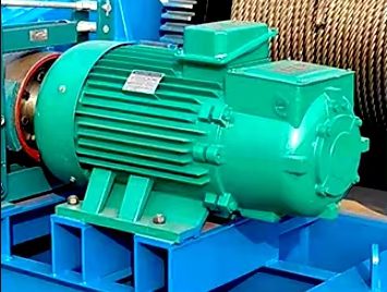 Электродвигатель преобразует электричество в механическую энергию для подъёма и перемещения тяжёлых грузов, обеспечивая стабильную работу и высокий КПД.